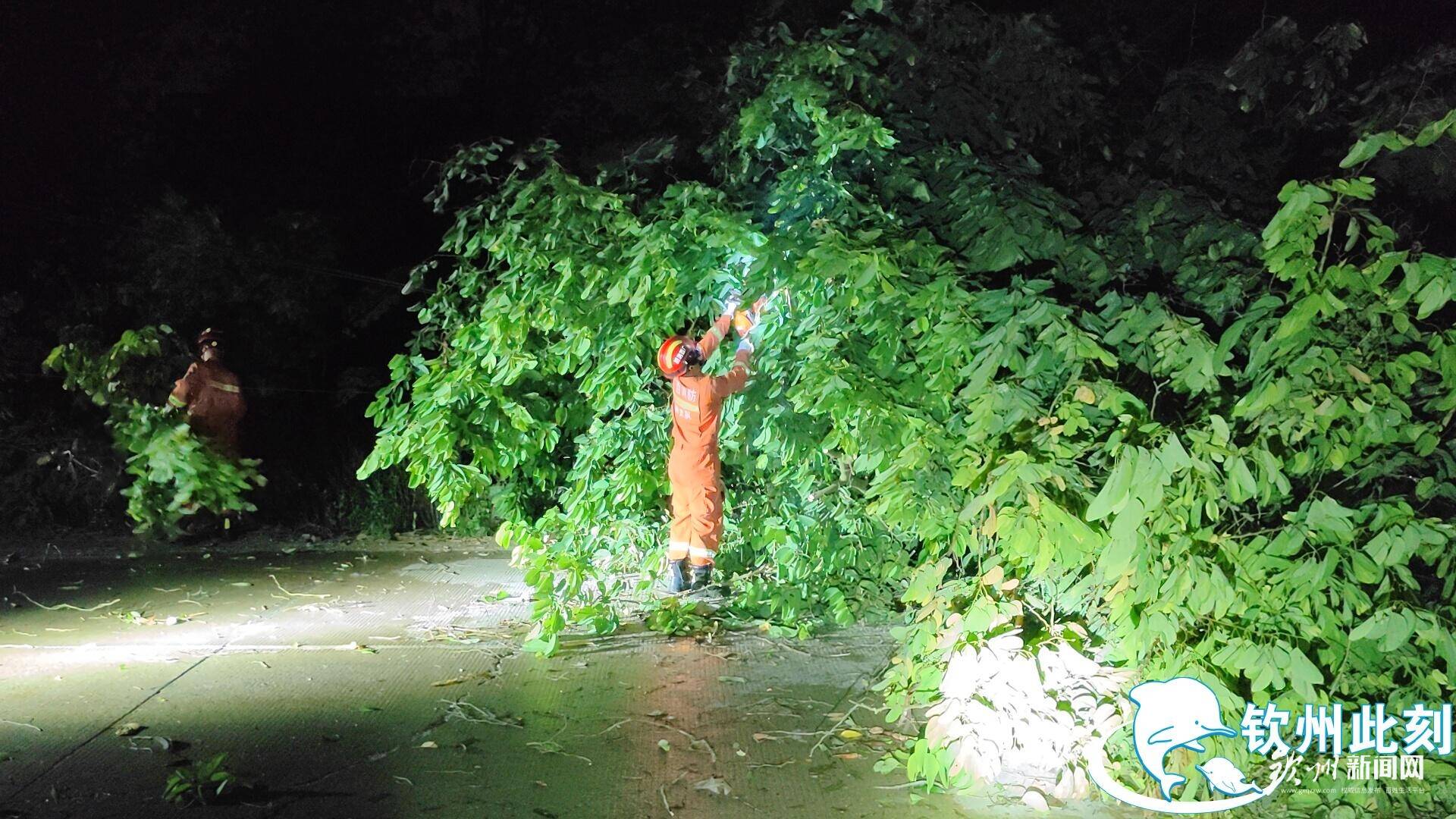 9月7日1时26分,钦州市消防救援支队接到群众报警称,灵山县新圩镇大炮岭采石场有树木因台风天倒塌,群众求助砍树。消防队员到达现场后发现,多棵倒塌树木已将道路全部阻拦。指挥员立即下令救援人员一边警戒道路,一边对大树进行分割清理。经过一个小时的处置,倒塌的大树被全部清理,道路恢复通行。
