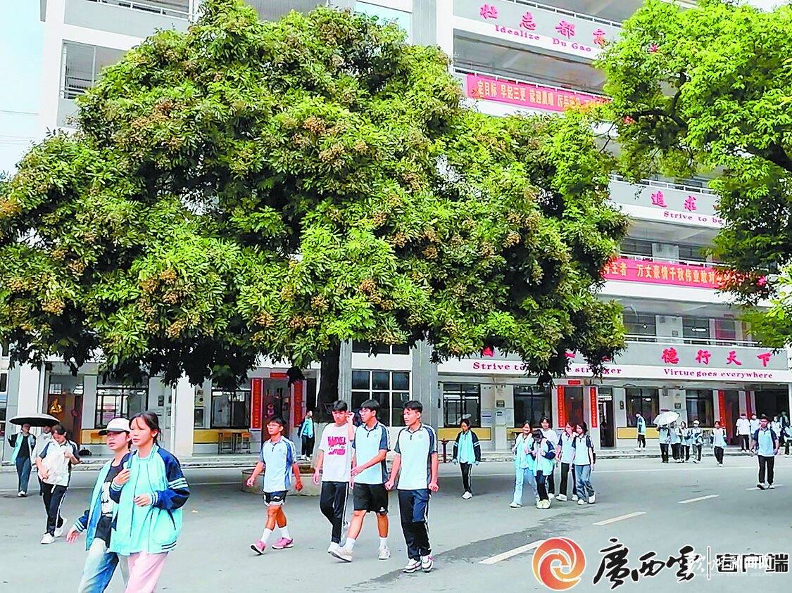 都安高中教学楼前的龙眼树枝繁叶茂。见习记者 罗丹 摄