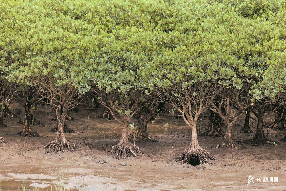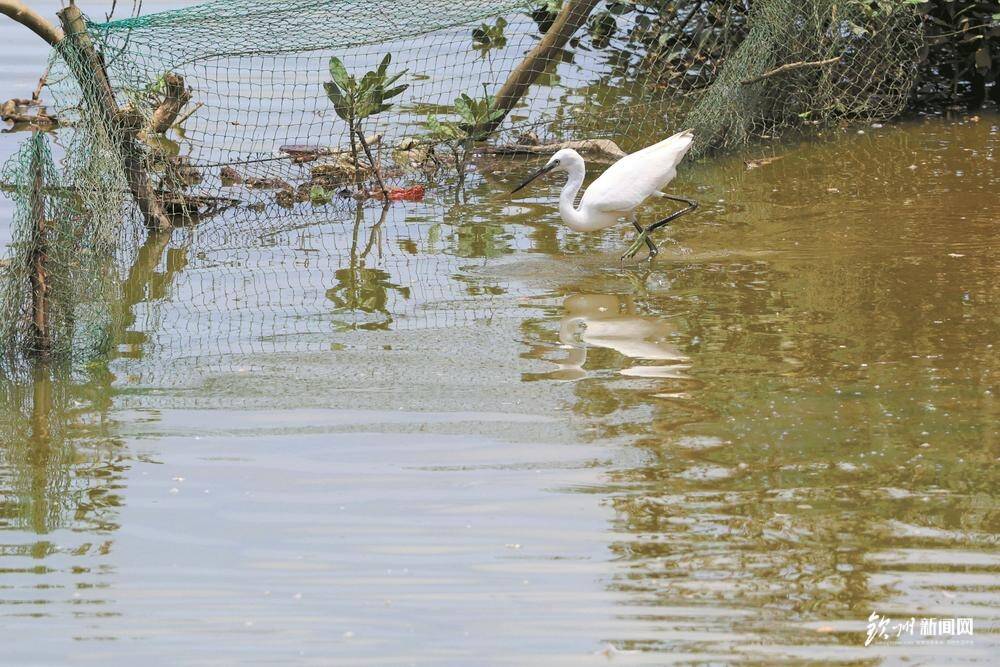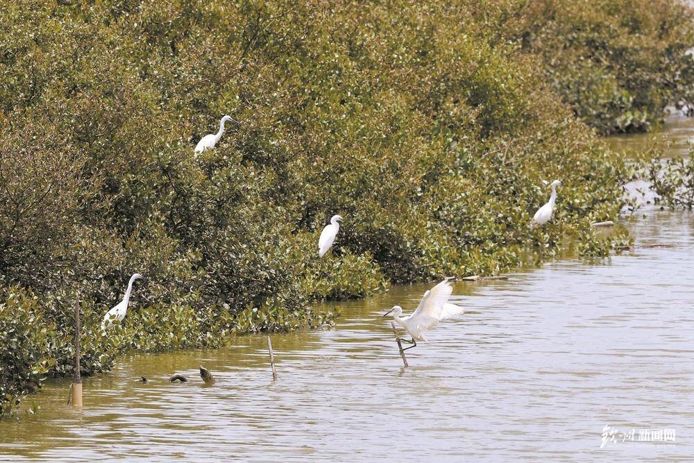 水天一色,白鹭起舞,新芽嫩绿,向上生长。这里是钦南区犀牛脚镇大灶江桥北乌龟塘红树林生态修复E区,漫长海岸线,红树林如珍珠项链般镶嵌于此。“1000余万株红树苗种植完成,种植面积316.29公顷。”一路边走边谈,长江南京航道工程局项目副经理王体根悉数道来。