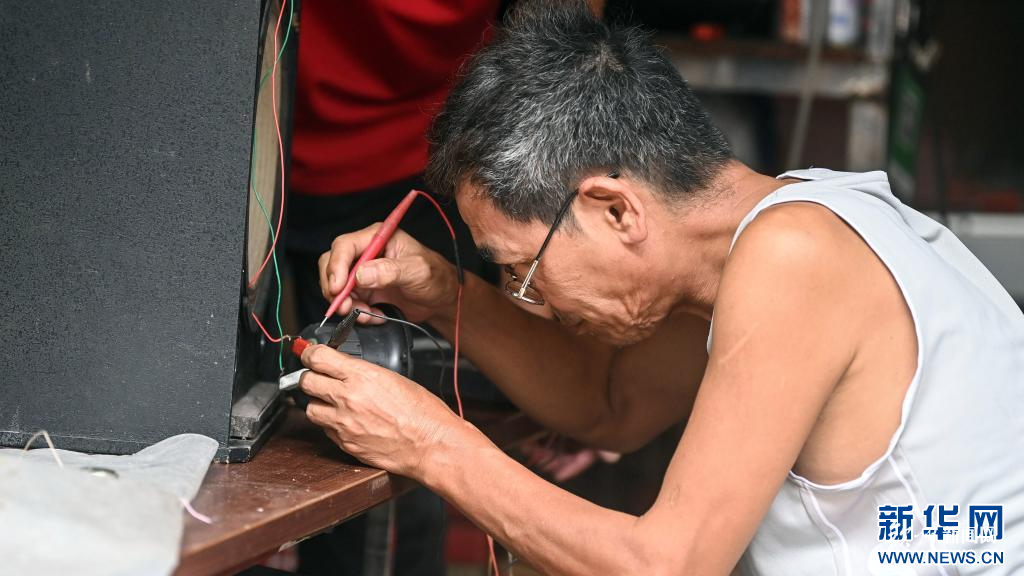 9月22日,一位老人在钦州老街修理音响。新华社记者 张爱林 摄
