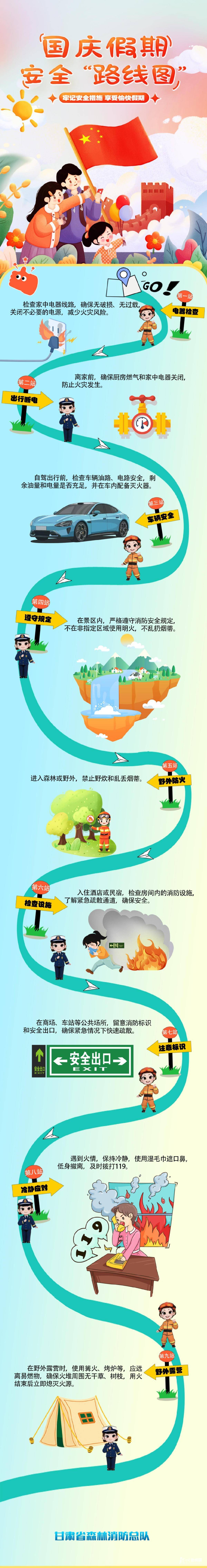 接下来我们将带你一起开启消防安全科普之旅,跟着国庆假期安全“路线”图深入了解消防安全知识,从火灾的预防到紧急情况的应对,从日常的消防隐患排查到正确的逃生方法。让我们一起在国庆的欢乐中,筑牢消防安全的“防火墙”,为这个美好的假期增添一份平安与祥和。