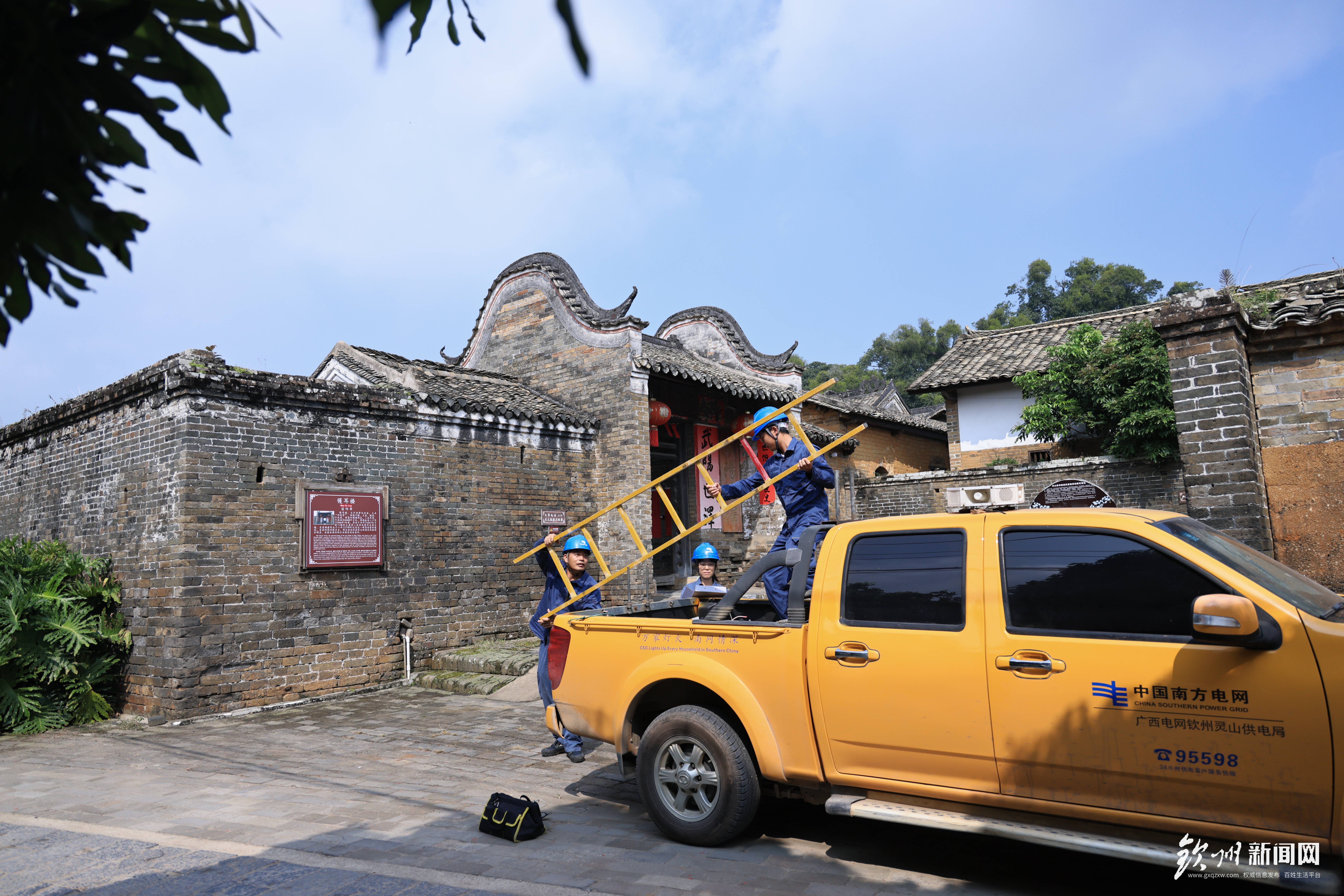 9月29日上午,钦州灵山供电局新圩供电所党员服务队到大芦村东园古宅群走访,了解近段时间该村旅游服务开展情况和国庆期间的用电需求,并对该村落古宅的低压配电线路设备开展检查维护。