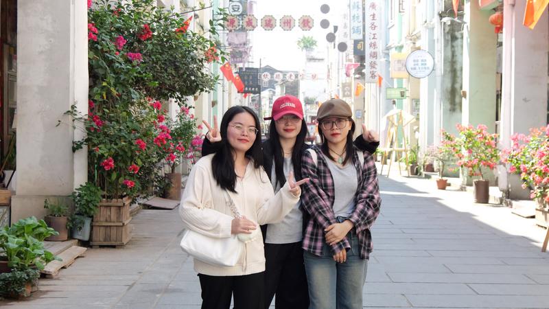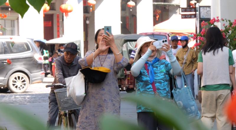 几位来自南宁的大学生专程来到钦州老街游玩拍照,他们穿梭在古街小巷,感受着钦州的历史魅力。杨同学兴奋地表示:“昨晚看到钦州的海鲜粉很好吃,就忍不住过来了。今天看到老街的三角梅开得很艳,真是让我眼前一亮!跟南宁比的话,钦州这边的三角梅开得比较分散,给人一种特立独行的感觉,特别美。”