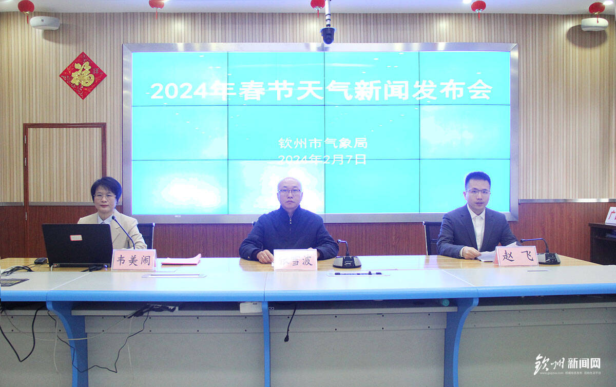 钦州市气象局于2月7日11时,在钦州市气象局举行2024年春节假期天气新闻发布会。邀请钦州市气象台副台长、高级工程师、新闻发言人韦美闹,钦州市气象台首席预报员、高级工程师张雪波介绍有关情况,并回答记者提问。发布会由钦州市气象台台长、高级工程师赵飞主持。