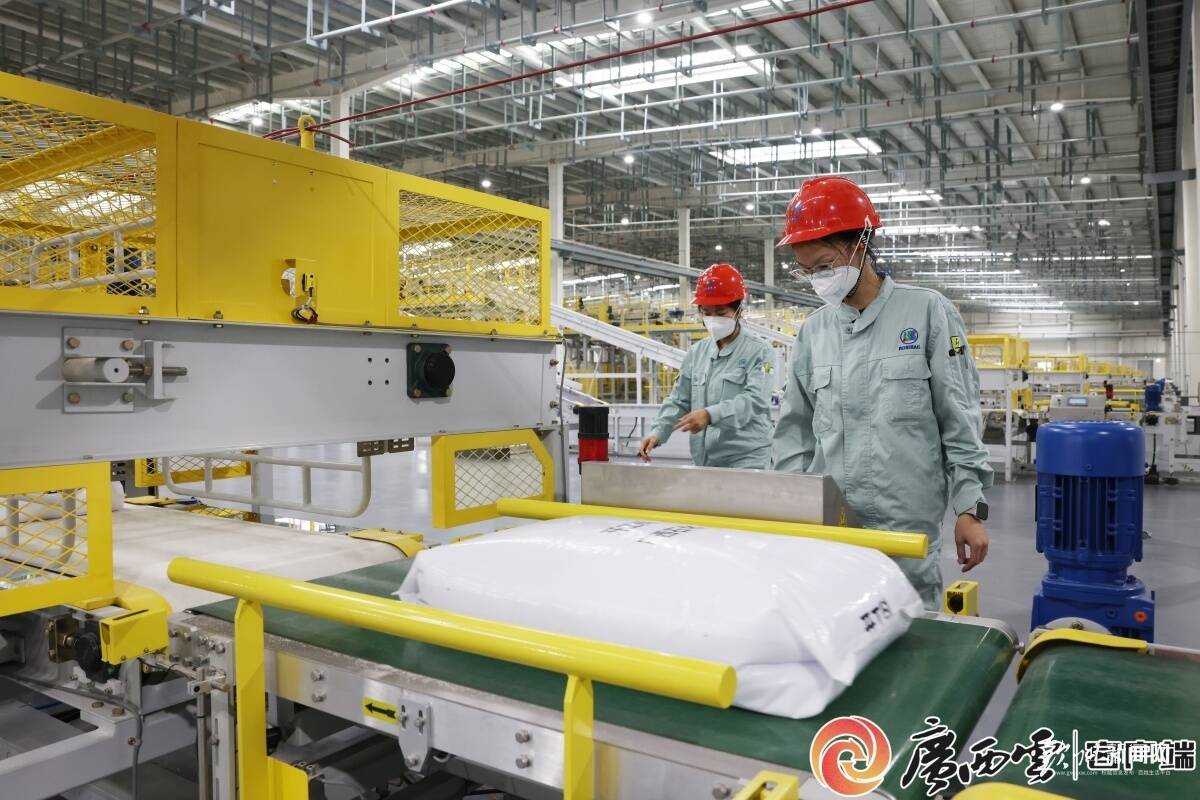 从空中回到地面,新材料产业同样是钦北区的一大亮点。在广西埃索凯新材料科技有限公司,一袋袋高纯硫酸锰整齐码放,叉车往来穿梭。“目前公司订单与产能基本匹配,预计今年产值将突破5亿元。”公司负责人陶书高介绍,“全球约60%的高纯硫酸锰都产自钦北区,产业的集聚效应,能与同行开展更深入的技术交流、资源共享。”凭借过硬的产品品质,公司吸引了来自全国乃至全球的订单。