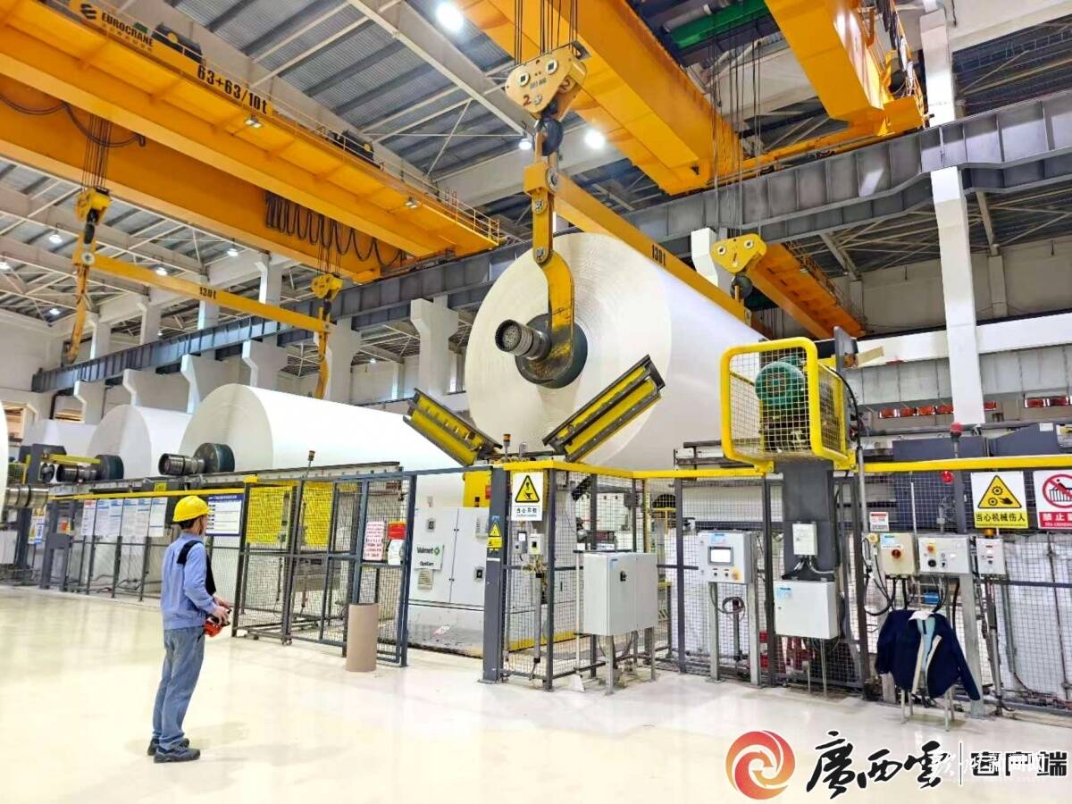 10多公里外的广西金桂浆纸业有限公司,呈现的是另一番景象。20多米高的自动仓立体货架向纵深延伸,无人穿梭车精准取放货物。“自动化立体仓库最大储存能力8.3万吨,设有6.4万个仓位,实现出入库无人化。”公司文宣处课长李兴军介绍,同等作业量下,可减少叉车工108人,年减少碳排放650吨。生产车间里,一卷卷高档白卡纸不断下线。目前,该公司已形成年产100万吨化机浆和190万吨高档白卡纸的产能规模,后续产业链延伸项目正稳步推进。