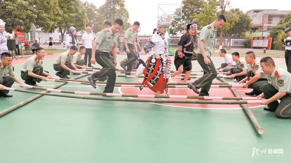 军民共跳竹竿舞,在欢快的节奏中增进双拥情谊。 李雪莲 摄